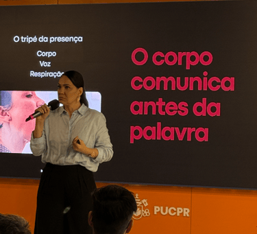 Experiências corporais e vocais vividas na prática, capazes de ampliar sua potência como comunicador em qualquer contexto.